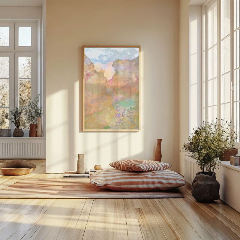 This contemporary abstract landscape art print is made from my original painting “Long Distance - Canyon”.